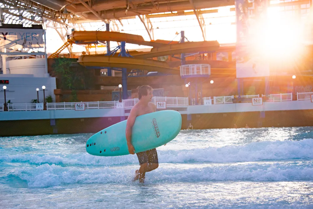 Notre premier jour de tournage a débuté au West Edmonton Mall. On était tous vraiment heureux de se rendre à la plus grande piscine à vagues intérieure du monde, le tout situé dans une oasis tropicale où la température moyenne est de 31 °C. Dur de se plaindre ! Cody connaissait bien l’endroit pour y avoir déjà été. Il s’est donc offert comme guide dans les glissades pour nous amener aux plus gnarly, question de se donner un petit rush d’adrénaline avant de commencer à tourner. On s’est rapidement dirigés dans la Nessie’s Revenge. Une descente avec trois bosses prononcées qui donnent une sensation légère de jumper entre chaque bosse. Cody nous donna la brillante idée de se donner une petite poussée supplémentaire à chaque bosse afin de prendre un peu d’altitude, sauf qu’en nous montrant ladite manœuvre, celui-ci s’est donné une poussée tellement grande qu’il est passé à deux doigts de complètement s’éjecter en dehors de la glissade. Une chute de 10 pieds de notre animateur à notre première journée de tournage, on va se le dire, ça aurait été tout sauf glorieux.
