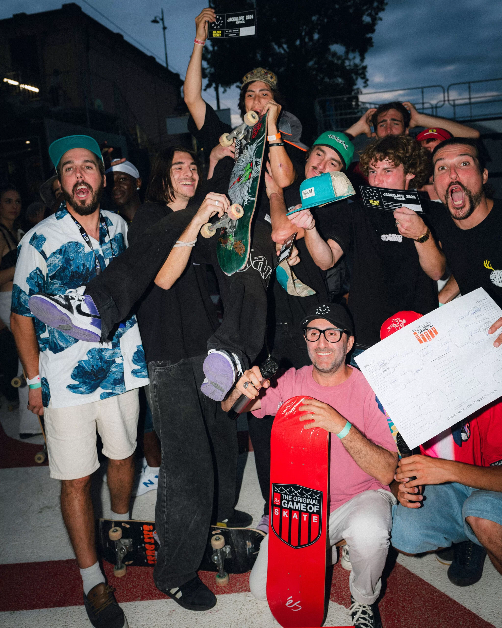 Vous savez déjà que les connexions sont multiples dans la grande famille JACKALOPE et qu’à chaque année, on accueille des invités de partout dans le monde. Pendant les Jeux Olympiques de Paris, JACKALOPE a été invité à se joindre à l’organisation d’une partie de S.K.A.T.E. jouée sur le bord de la seine. C’est là que nous avons rencontré de nouveaux amis à qui nous offrons un billet pour nous rendre visite à Montréal ! Trois personnes ont été invitées : les deux finalistes de la partie de skate ainsi qu’un invité spécial recommandé par un partenaire (ICON), afin d’ajouter à la qualité de la compétition internationale de skateboard qui aura lieu lors de l’édition Montréal 2024. Voici leur nom et une petite présentation de chacun de ces athlètes électrisants.