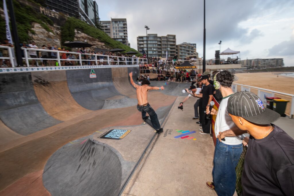 La compétition GROM a également offert un spectacle impressionnant. Le tout sous les yeux de Bob Burnquist, dont la présence a touché autant les enfants émerveillés que les parents nostalgiques. Impressionné par le niveau, il n’a pas manqué de souligner l’avenir prometteur de la relève australienne. Sa bienveillance, son attention et son énergie ont élevé la journée et l’événement à un autre niveau.