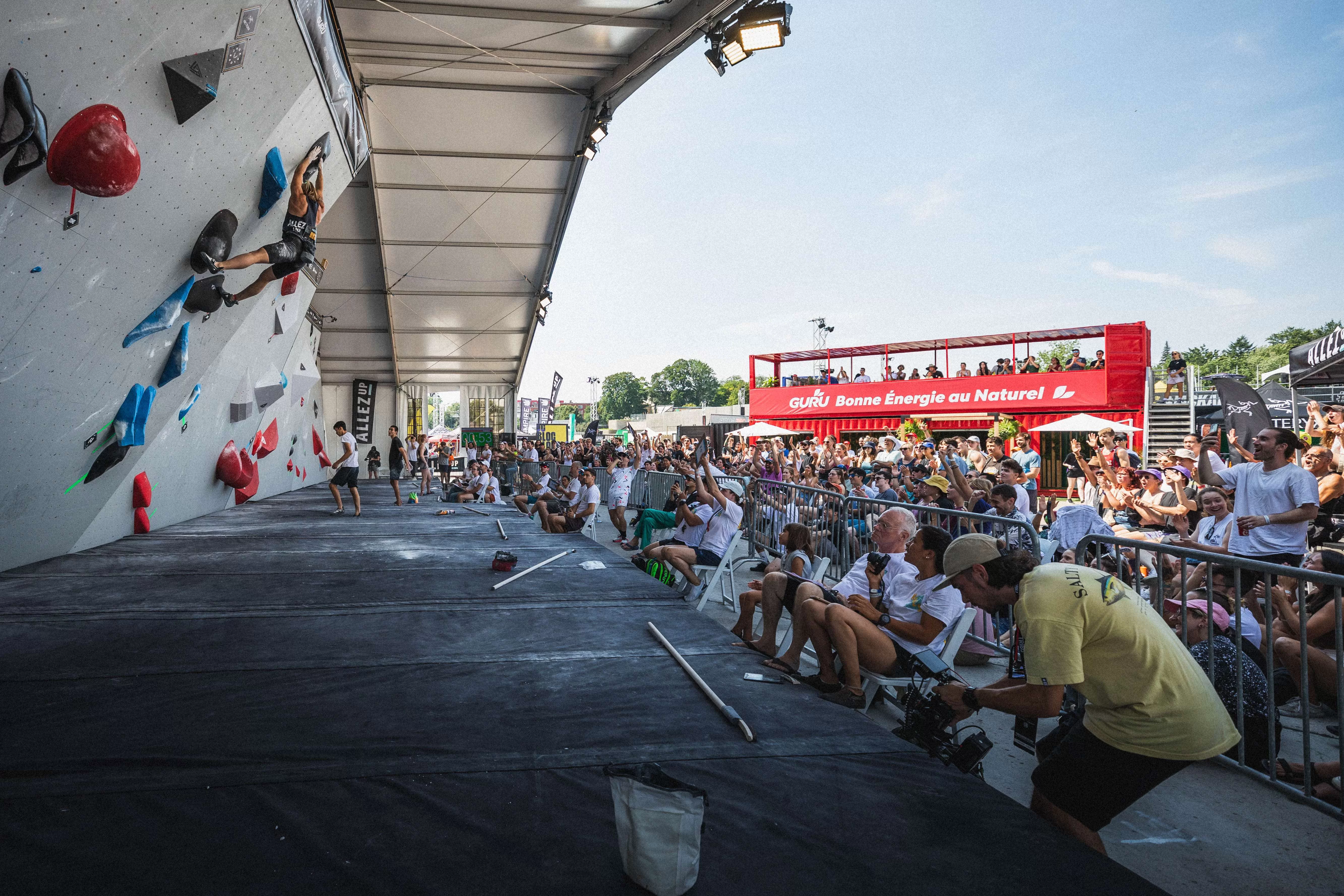 Compétition d’escalade de bloc sur un mur de 80 pieds