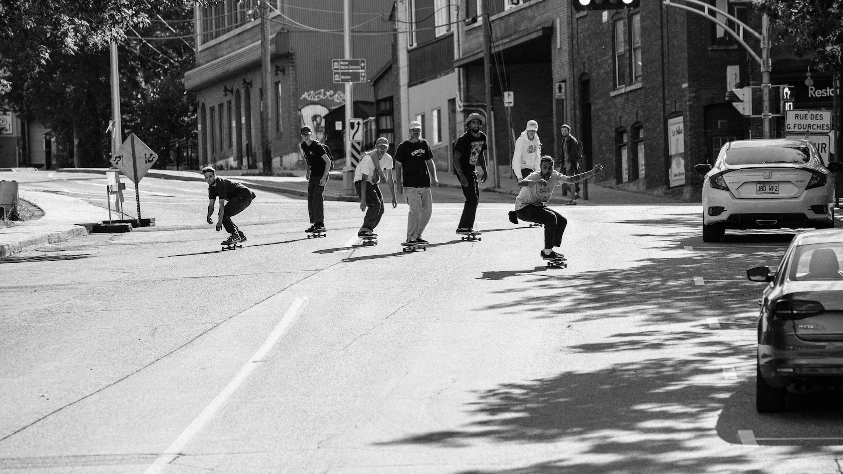 For this second season of SKATE DISTRICT, we followed crews through the best street spots in their city. Between Sherbrooke, Quebec City and Saguenay, we totaled more than 100 tricks and about twenty street spots.