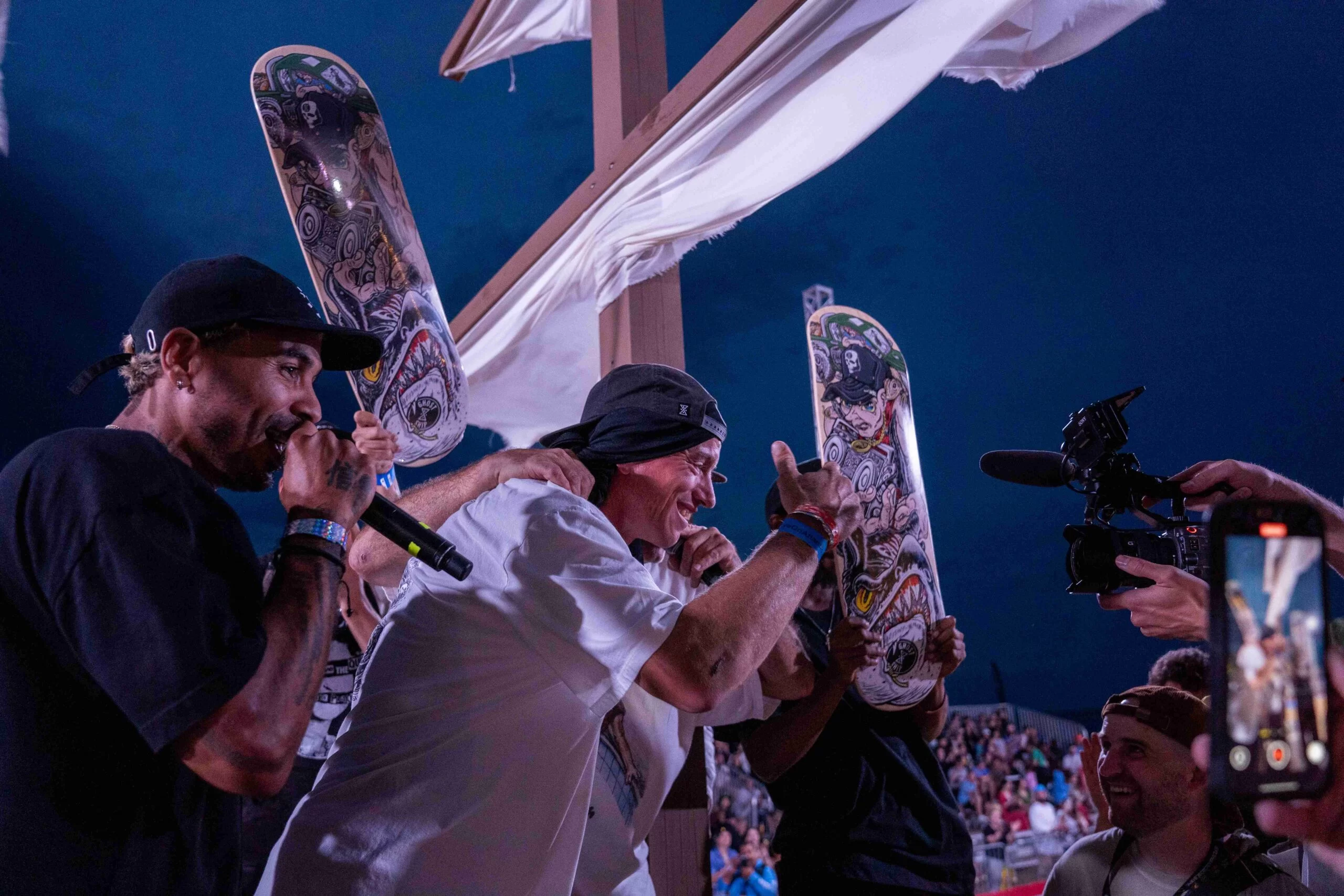 Street & vert skateboarding competitions with international pros, BASE jumpers launching from the Hilton Hotel, BMX & Moto X demos, Skimboarding, jet ski freestyle, and highline
